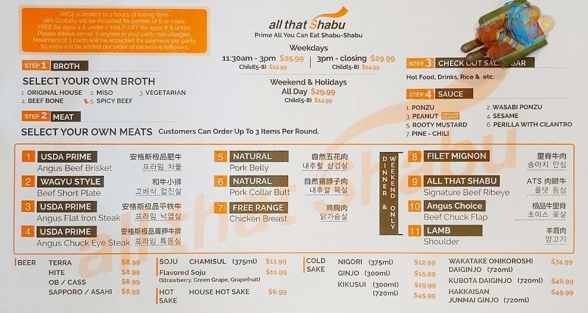 Welcome to All That Shabu - Irvine, a popular buffet-style hot pot and Korean restaurant located at 15315 Culver Dr Ste 145 in Irvine, CA. This trendy and casual eatery offers a wide range of options for diners, including vegan and vegetarian choices, making it accessible to all dietary preferences.