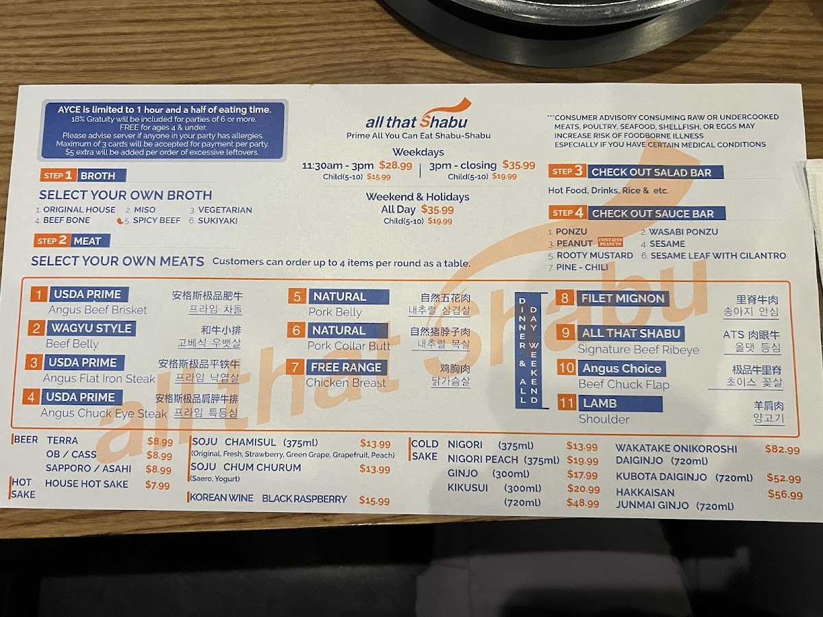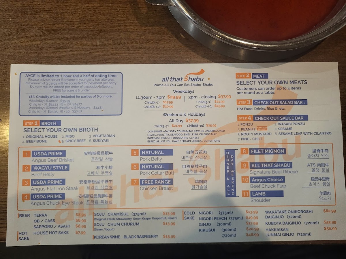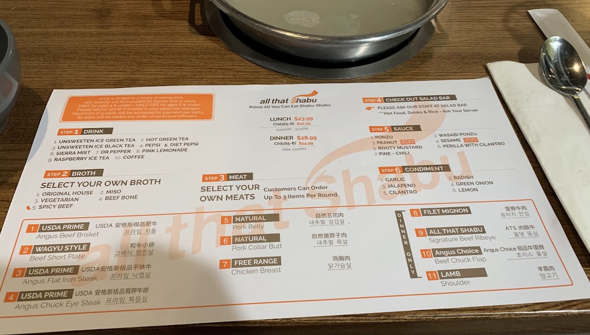 Customers rave about the attentive service and extensive selection of soups, meats, seafood, veggies, and hot appetizers. The spacious interior provides a comfortable dining experience, perfect for groups or families. With options for private dining and catering, All That Shabu is a versatile choice for any occasion.