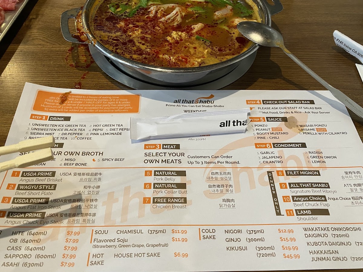 Overall, All That Shabu - Irvine stands out as a top choice for shabu shabu enthusiasts, offering a delightful combination of excellent service, diverse menu options, and a welcoming atmosphere. Whether you're a regular patron or a first-time visitor, this restaurant is sure to impress with its high-quality ingredients and exceptional service.